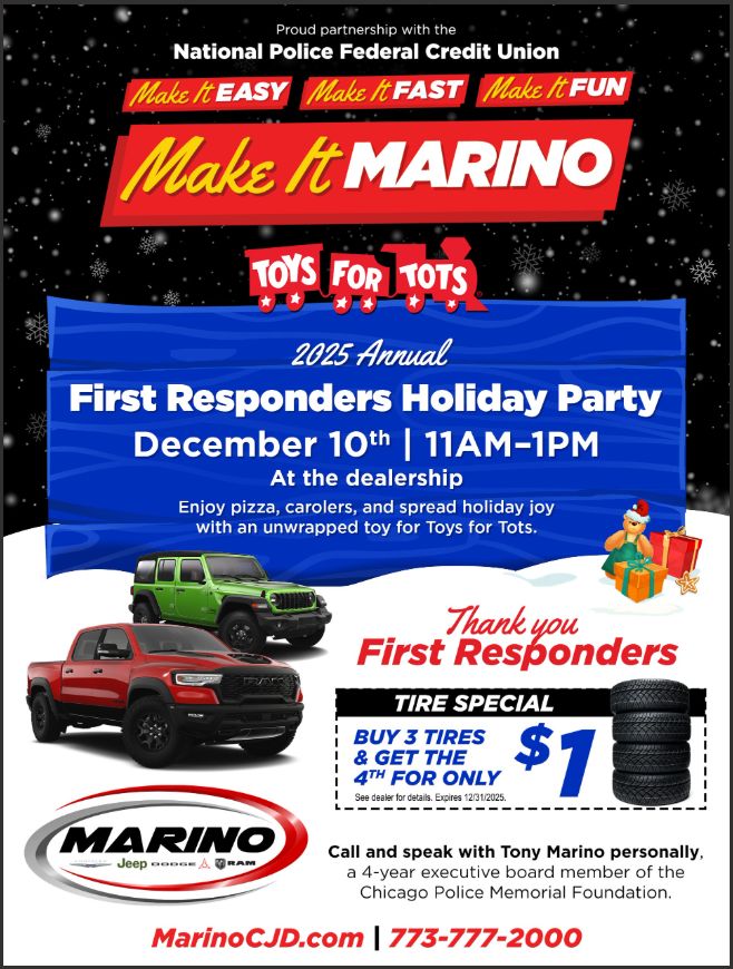 Join us at Marino Chrysler Jeep Dodge Ram for our 2025 First Responders Holiday Party, proudly supporting Toys for Tots.